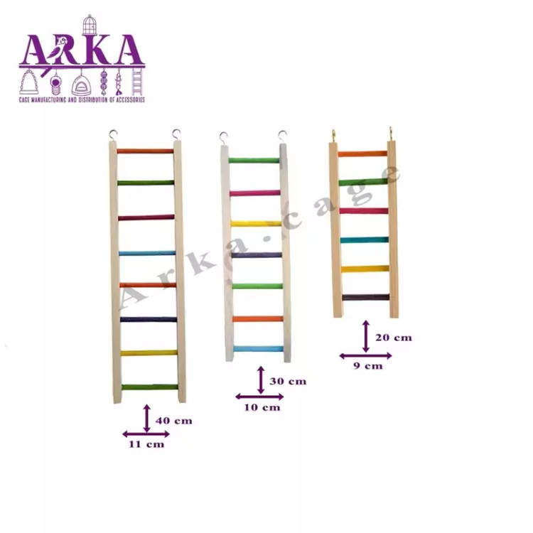 نردبان سایز کوچک ارتفاع 20 سانت ترکیب شده با رنگ خوراکی دارای قلاب جهت آویز شدن داخل یا بیرون قفس مناسب جهت سرگرمی و بازی پرندگان