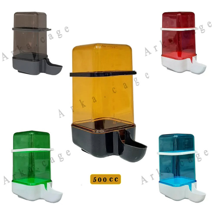 آبخوری مربع سایز ۵۰۰ سی سی مناسب برای پرندگان متوسط و درشت جثه مخصوص سالنداران گرامی قابل نصب بر روی قفس های ریز بافت و درشت بافت ( رنگ بندی قرمز ، زیتونی ، آبی ، عسلی و بنفش ؛ سفید و دودی باکیفیت بسیار بالا )