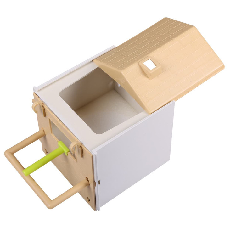 - به منظور بیرون آوردن جوجه ها یک لگن داخل لانه تعبیه شده است و با توجه به جنس آن که از پلاستیک سخت می باشد پرنده امکان آسیب زدن به آن را ندارد.