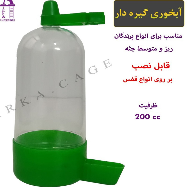 آبخوری گیره دار بزرگ قابل نصب بر روی انواع قفس درشت و ریز بافت ، دارای رنگ بندی متنوع شاد